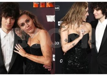 The sparkling ring worn by global pop star Miley Cyrus on her left finger during the premiere of Avatar: Fire...
