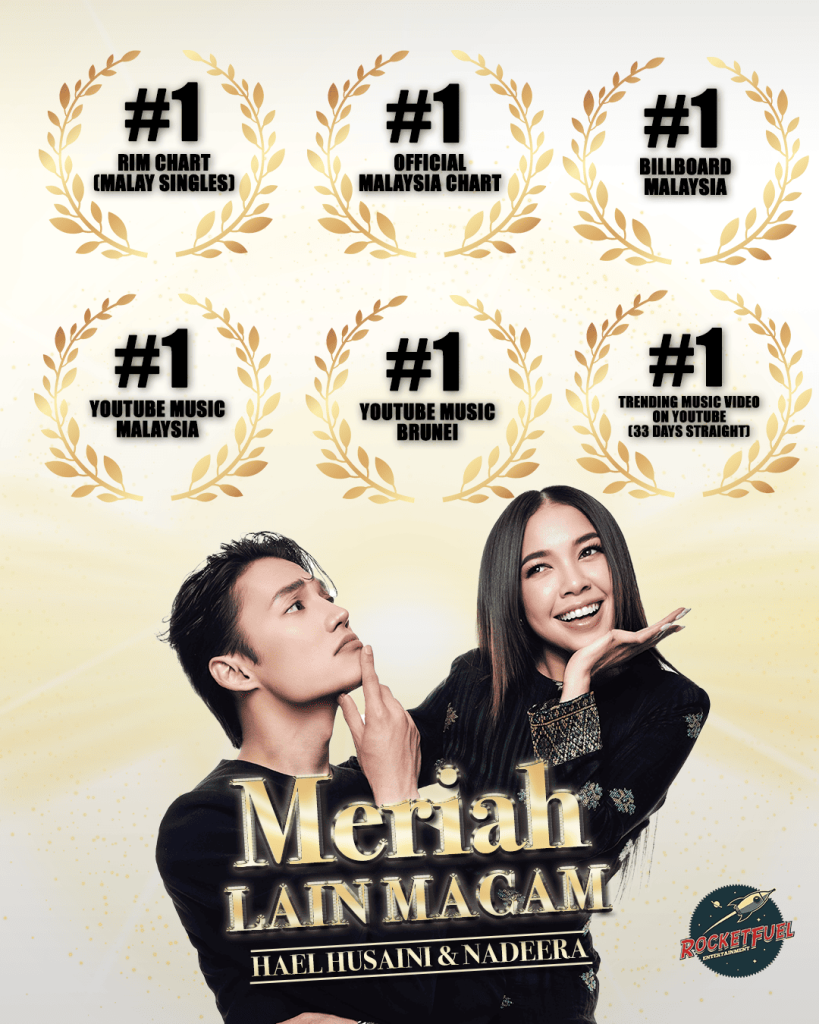 Rocketfuel Entertainment made history during Ramadan and Aidilfitri 2025 with the launch of three popular Raya songs – Meriah Lain Macam (Hael Husaini & Nadeera), Nyam Nyam Ketupat (Zizan Razak, Wani Kayrie, Dinda Dania & Miss Alvy), and Dam Dim Dum Raya (Nadeera).