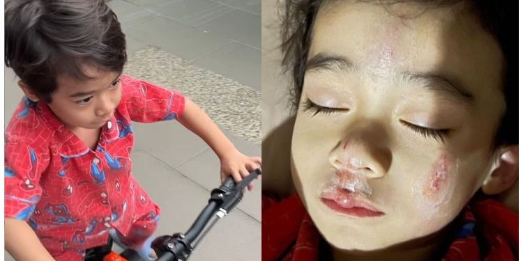 Pelakon Datin Elvina Mohamad berkongsi detik cemas melihat anaknya, Karl Mateen Mohd Haniff mengalami kecederaan selepas basikal ditunggang masuk ke dalam longkang.