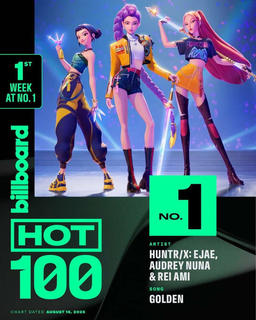 The song “Golden” by HUNTR/X (EJAE, Audrey Nuna, and Rei Ami), the official soundtrack for Netflix’s animated film KPop Demon Hunters, made history by securing the top spot on the Billboard Hot 100 chart.