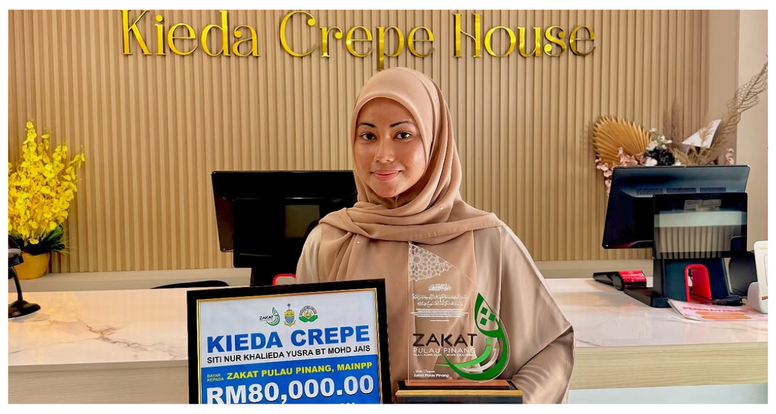 Sensational entrepreneur Kieda Crepe, whose real name is Siti Nur Khalieda Yusra Mohd Jais, once again grabbed attention by fulfilling her responsibility as a Muslim businesswoman, contributing a business zakat of RM80,000 to the Penang Zakat Board, MAINPP.