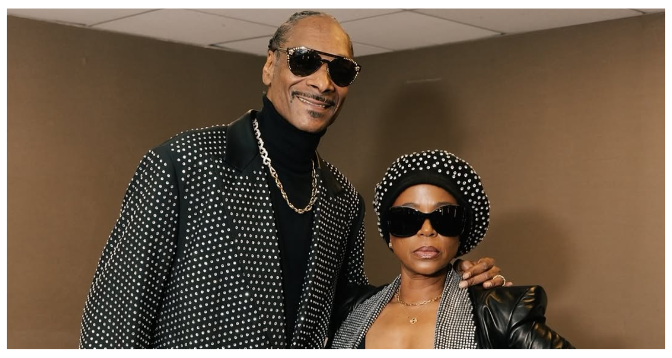 Snoop, 53, memuat naik foto mereka berdua di karpet merah dengan kapsyen ringkas berbentuk emoji hati biru sambil menandai nama isterinya.