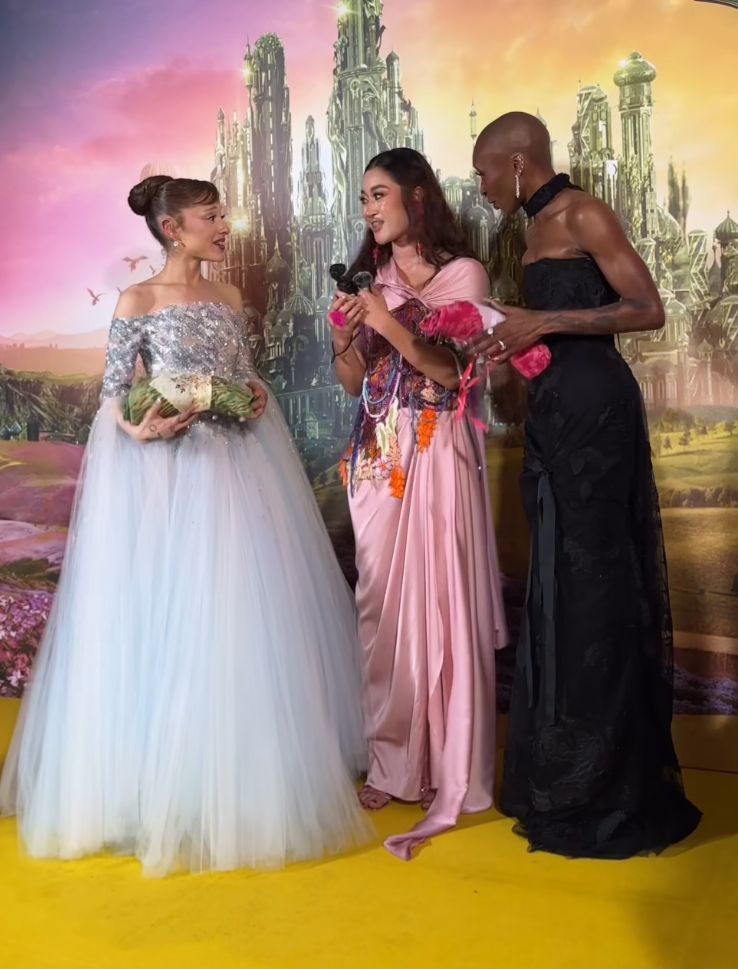 “Terharu mewakili Malaysia untuk tayangan perdana filem Wicked, saya sayang kamu Ari, saya sayang kamu Cynthia. Saya benar-benar telah berubah ke arah yang lebih baik kerana kedua-dua insan luar biasa ini. Alhamdulillah kepada Allah Yang Maha Esa, lama menjadi peminat kedua-duanya. Terima kasih @uipmalaysia atas peluang emas ini. Glinda dubber Malaysia hadir!,” katanya di instagram.