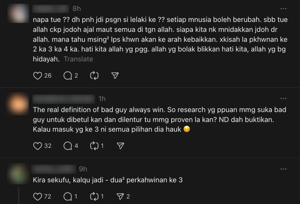 “Nora Danish silap pilih pasangan,” tulis seorang pengguna.