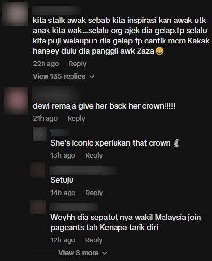 Meninjau ruangan komen, rata-rata netizen meminta Haneesya “rampas semula takhta” sebagai pemenang Dewi Remaja dan memuji sikapnya yang dikatakan tidak pernah lupa asal usul meskipun sudah berjaya dalam industri seni.
