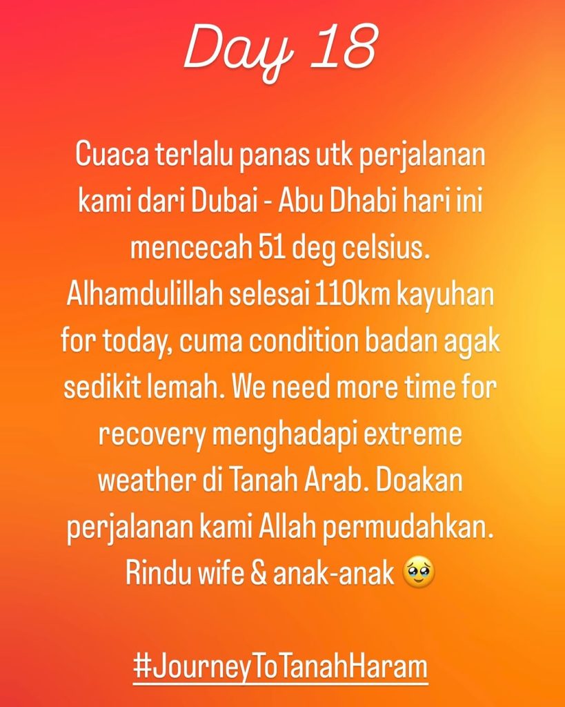 “Cuaca terlalu panas untuk perjalanan kami dari Dubai ke Abu Dhabi hari ini mencecah 51 darjah Celsius.