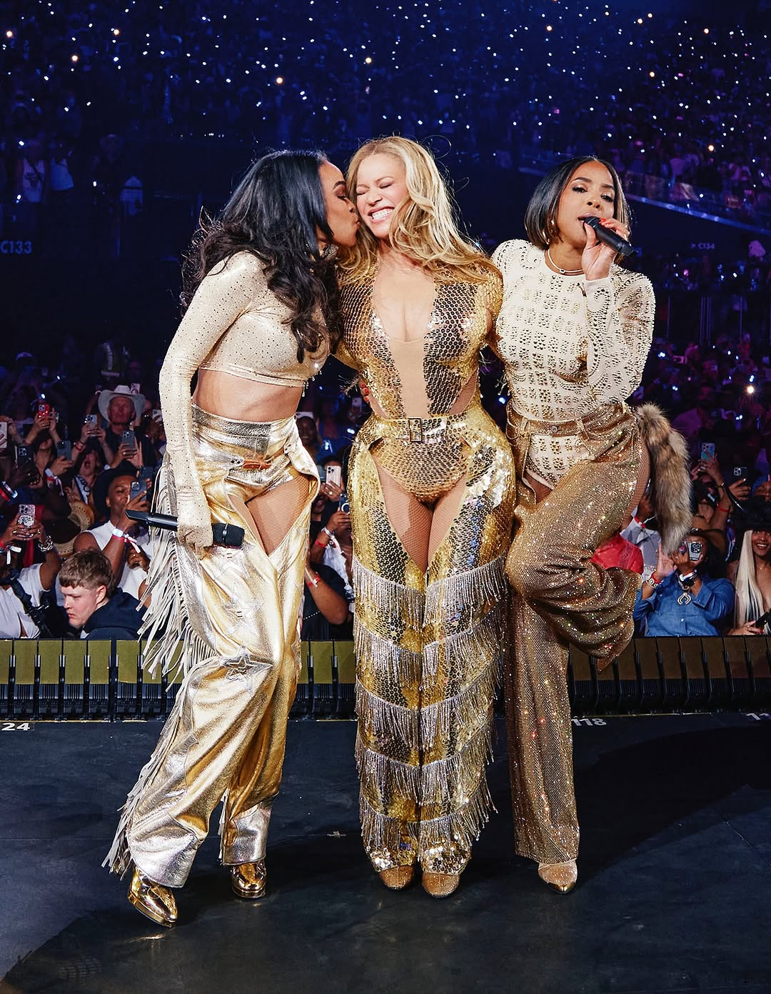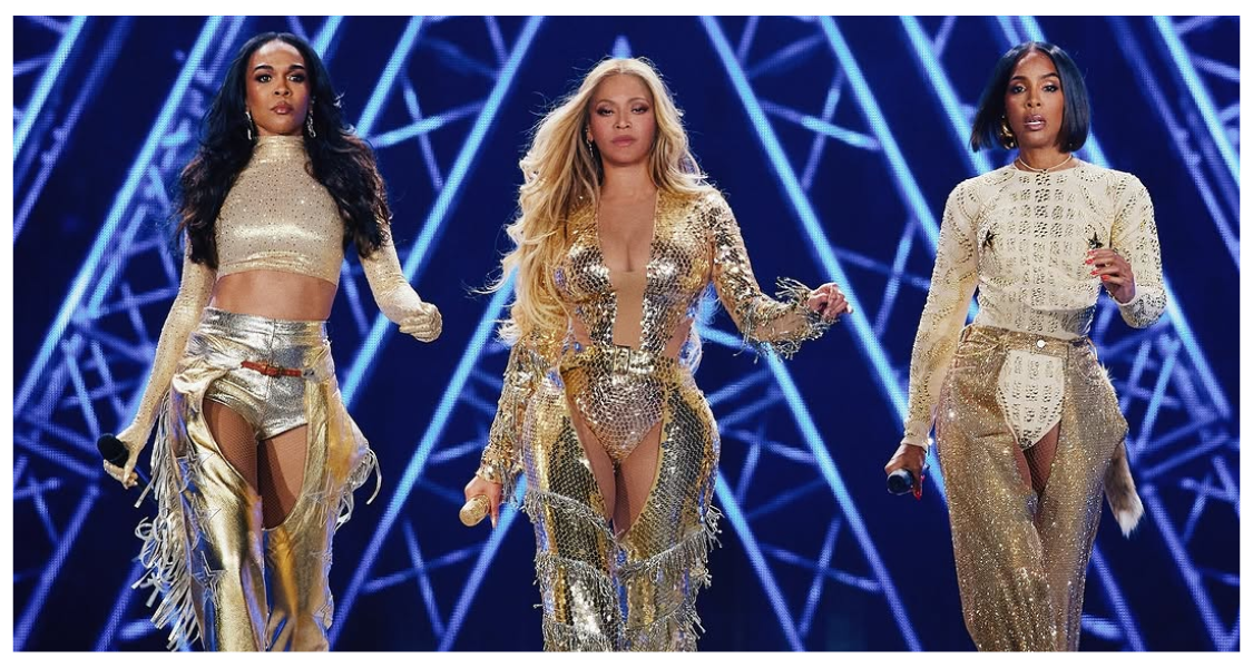 Trio ikonik itu iaitu Beyoncé, Kelly Rowland dan Michelle Williams muncul penuh gaya dalam persalinan jumpsuit keemasan dan menghiburkan puluhan ribu penonton dengan medley lagu hits seperti “Lose My Breath” dan “Bootylicious“.
