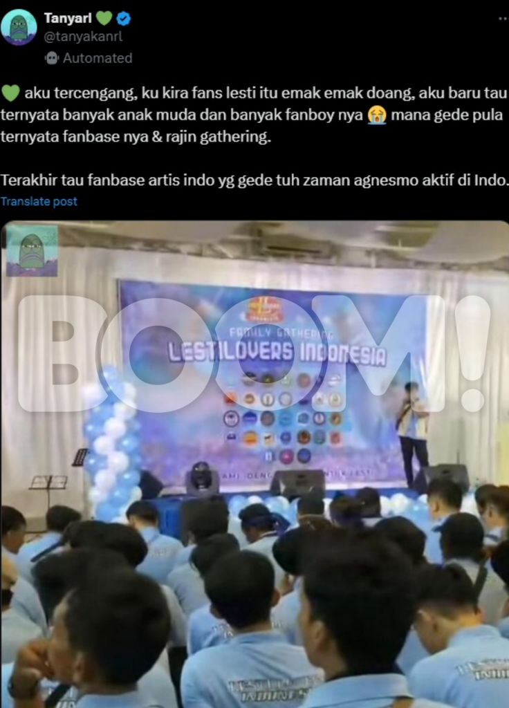 Fenomena ini mencuri perhatian selepas satu foto tular di platform X memaparkan sekumpulan peminat Lesti menghadiri sebuah perjumpaan dengan memakai baju-T biru langit tertera tulisan “LESTILOVERS INDONESIA”.