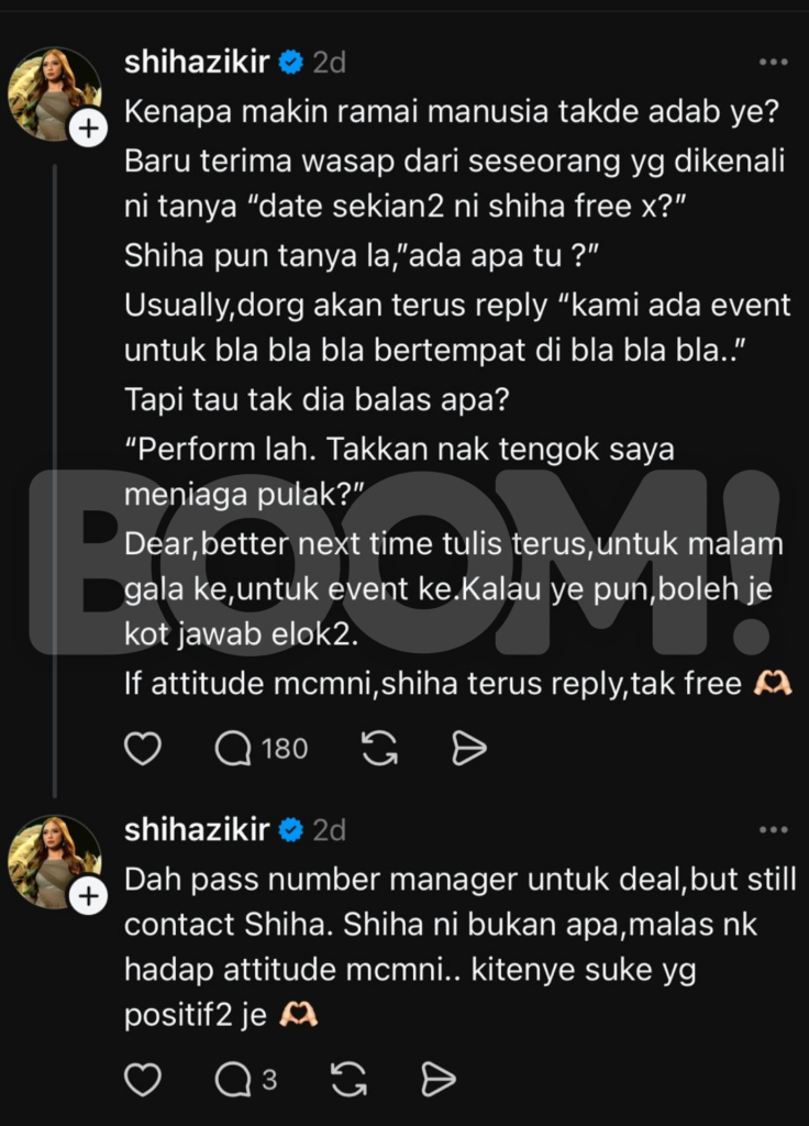 Rata-rata netizen bersetuju dengan kenyataan Shiha dan turut menegur sikap kurang profesional segelintir pihak dalam berkomunikasi. – BOOM!