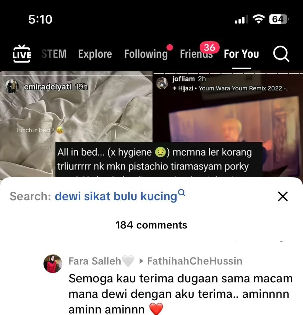 Semuanya bermula apabila Fara meninggalkan komen di sebuah video TikTok yang mengkritik Dewi, isteri kepada Jofliam, yang dikatakan tidak menjaga kebersihan kerana makan dan membersihkan bulu kucing di atas katil.