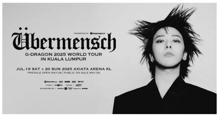 Raja K-Pop kembali! G-DRAGON, nama yang tidak asing lagi dalam dunia muzik global, kini bersedia menggegar pentas Malaysia menerusi G-DRAGON 2025 WORLD TOUR [Übermensch], yang akan berlangsung selama dua malam pada 19 dan 20 Julai 2025 di Axiata Arena, Bukit Jalil, Kuala Lumpur.