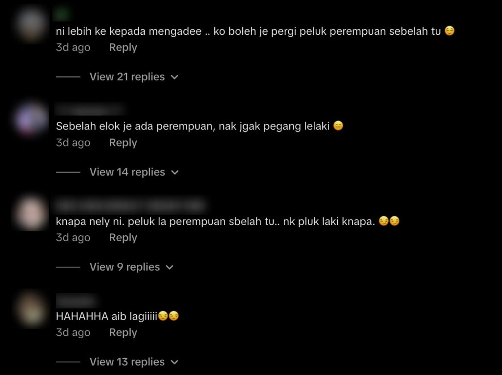 “Sebelah tu perempuan tapi dia lebih memilih peluk lelaki,” komen seorang netizen.