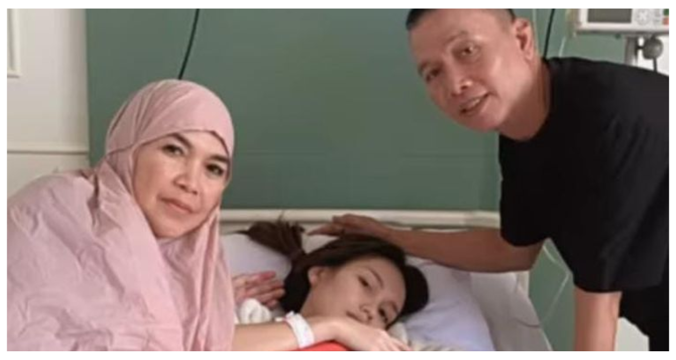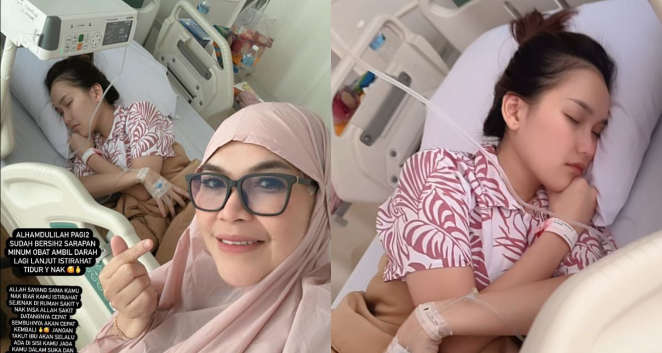 Dalam perkongsian tersebut, Umi Kalsum turut memuat naik video Ayu yang sedang terbaring lemah di katil hospital dengan jarum IV di tangan.