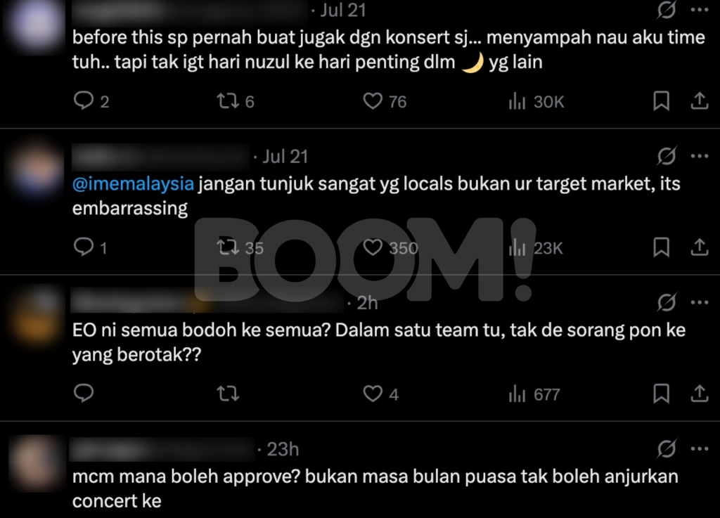 Namun, pengumuman itu menerima kecaman ramai peminat tempatan apabila tarikh konsert berkenaan dikatakan jatuh dalam bulan Ramadan tahun hadapan.
