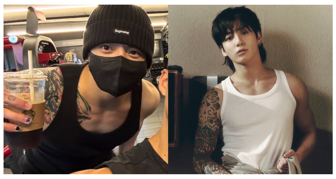 Dalam gambar yang dimuat naik ke media sosial, Jungkook kelihatan sedang menjalani sesi senaman sambil mengenakan beanie hitam dan singlet hitam yang mendedahkan bahunya, sekali gus menampakkan tatu baharu yang lebih jelas dan berwarna.