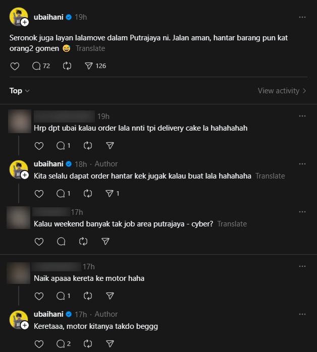 “Seronok juga layan Lalamove dalam Putrajaya ni.