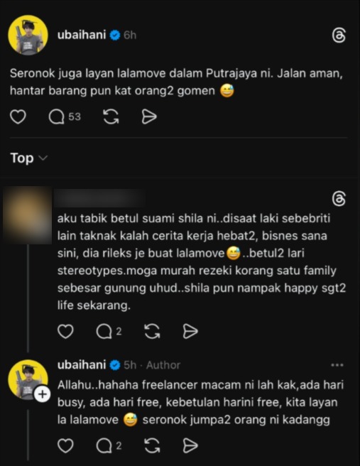 Perkongsian Ubai, suami kepada penyanyi terkenal Shila Amzah, di platform Threads mencuri perhatian ramai apabila dia mendedahkan sedang melakukan kerja sampingan sebagai penghantar barang.