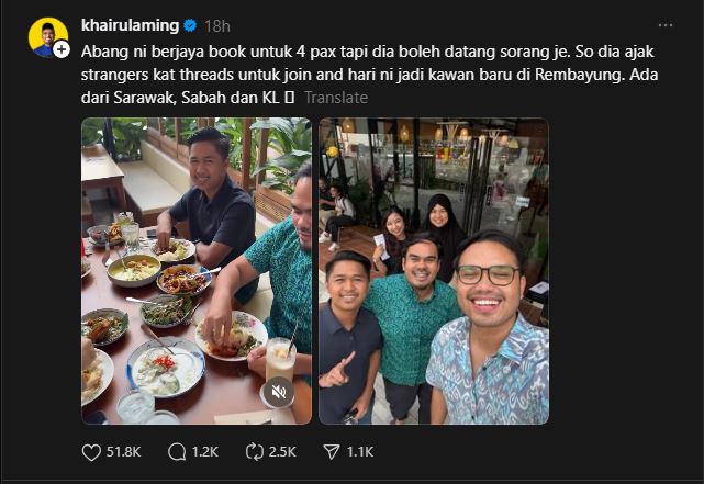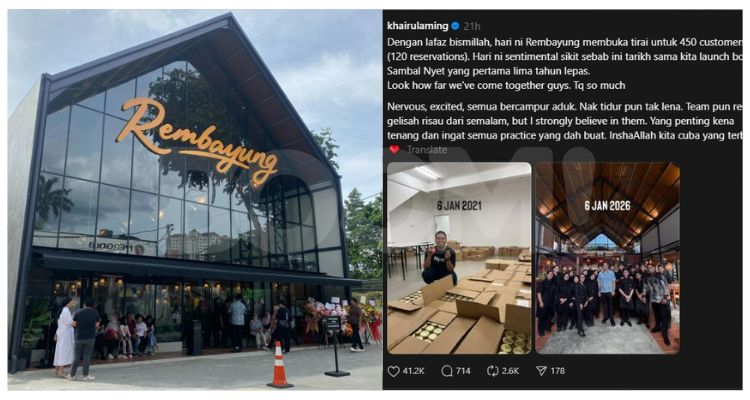 Pelanggan terawal yang berkunjung ke Restoran Rembayung milik pempengaruh Khairul Aming mula berkongsi resit harga serta pengalaman mereka di media sosial.