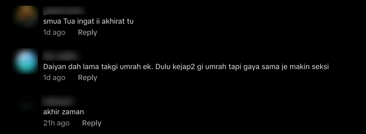 “Yang dah pergi umrah tu pun paling seksi,” komen seorang pengguna.