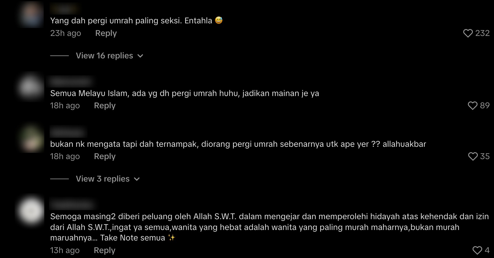 “Yang dah pergi umrah tu pun paling seksi,” komen seorang pengguna.
