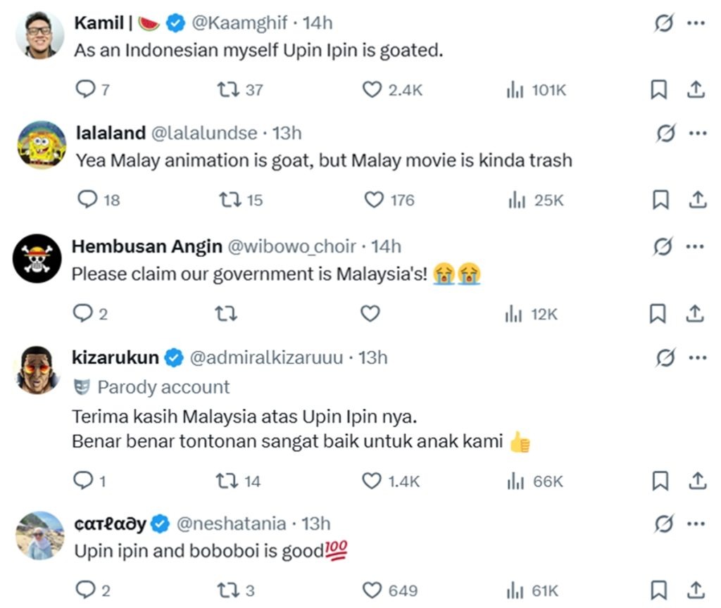 “Sebagai rakyat Indonesia, Upin & Ipin memang terbaik,” tulis seorang pengguna media sosial.