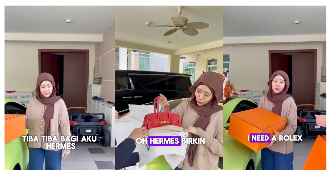 Pempengaruh dan usahawan terkenal, Opai memujuk isterinya, Fatin Afeefa, dengan hadiah mewah berupa beg tangan jenama Hermes Birkin selepas isterinya dikatakan merajuk.