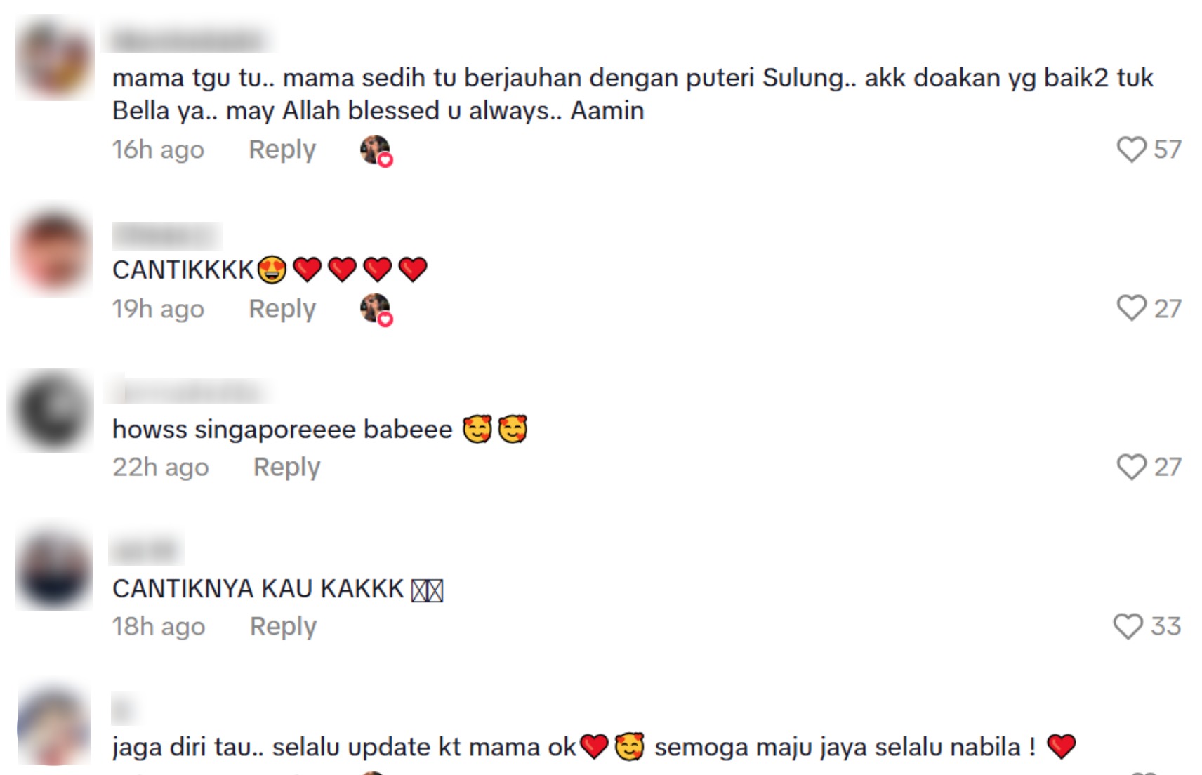 Dalam masa sama, ramai netizen turut menasihatkan Nabila agar menjaga diri di negara orang, memandangkan dia kini memulakan kehidupan dan kerjaya baharu tanpa keluarga di sisi. – BOOM!
