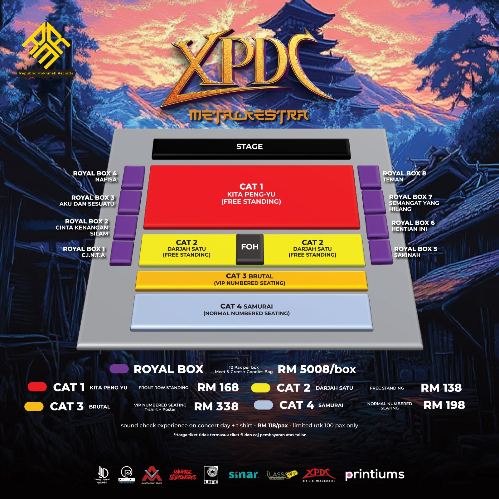 Tiket kini boleh didapati di www.ilassotickets.com/konsertxpdcmetalkestra dengan harga bermula RM138 hingga RM5,008 untuk Royal Box (10 pax termasuk sesi Meet & Greet dan goodie bag). – BOOM!