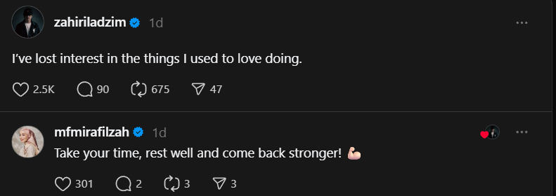 “Itu anhedonia, salah satu simptom depresi. Dapatkan bantuan profesional.” tulis salah seorang pengguna.