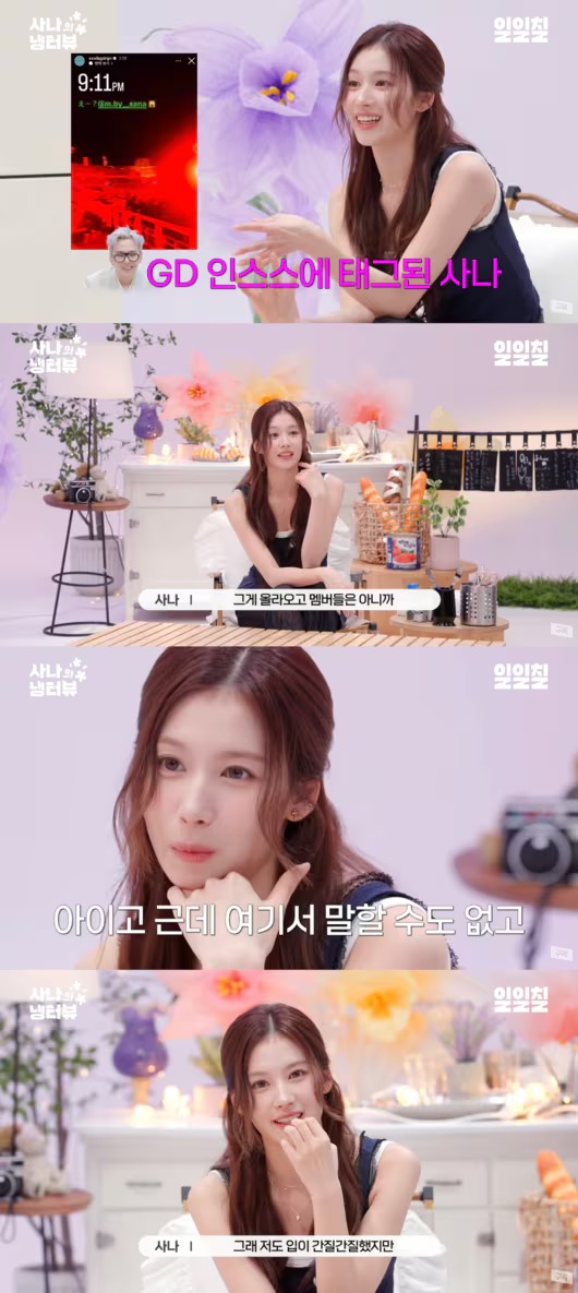 Sana, on the other hand, explained that she was also shocked when her account suddenly appeared on G-Dragon’s social media just days after the show’s filming, but she couldn’t disclose anything at the time.