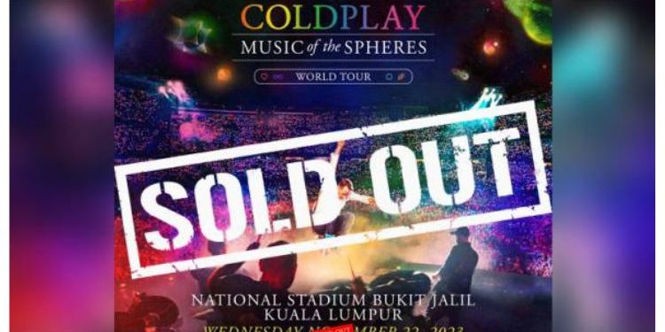 Tiket konsert Coldplay: Music of the Spheres World Tour habis dijual kurang empat jam selepas jualan umum dibuka pada jam 10 pagi, Rabu.