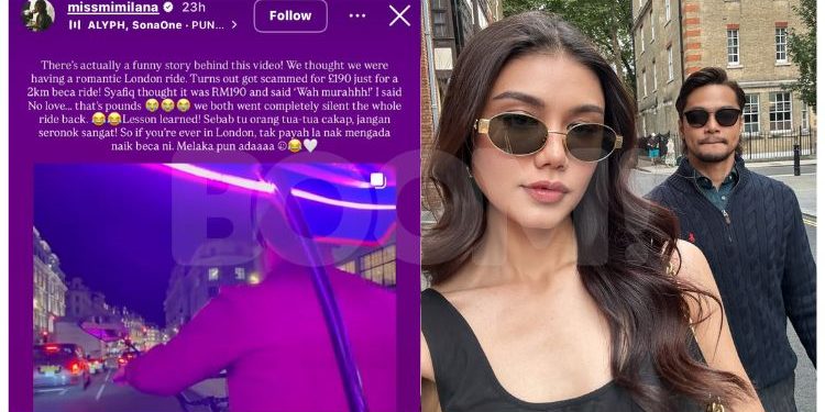 Popular celebrity couple Syafiq Kyle and Mimi Lana recently shared a shocking experience that left many fans surprised. During their romantic vacation in London, the couple were charged £190 (around RM1,100) for just a two-kilometer rickshaw ride!